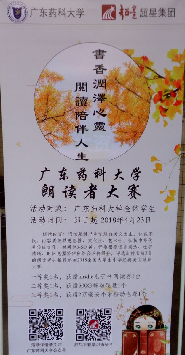 | 广东药科大学朗读者大赛 即日起-2018年4月23日 | ||||||