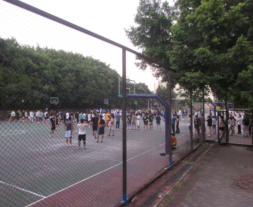 今天生活区六栋篮球场进行的一场新生杯篮球赛 药科院和中药学院常规时间22比22战平 加时阶段,中药学院把握和发挥都更胜一筹,最终以32比24取胜