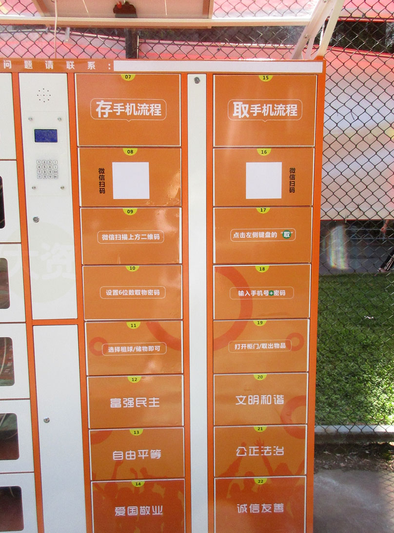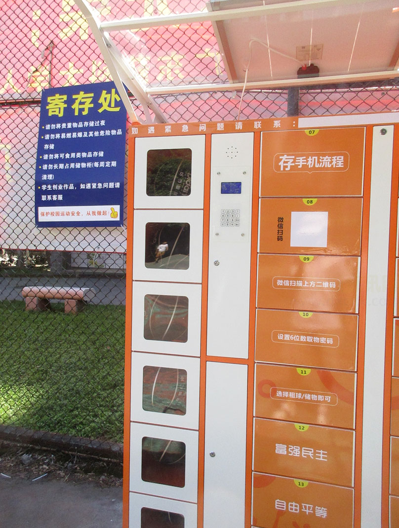 广药生活区6栋篮球场看到也安装了跟华师南生活区篮球场一样的寄存手机等&还有卖篮球or存篮球的储物柜