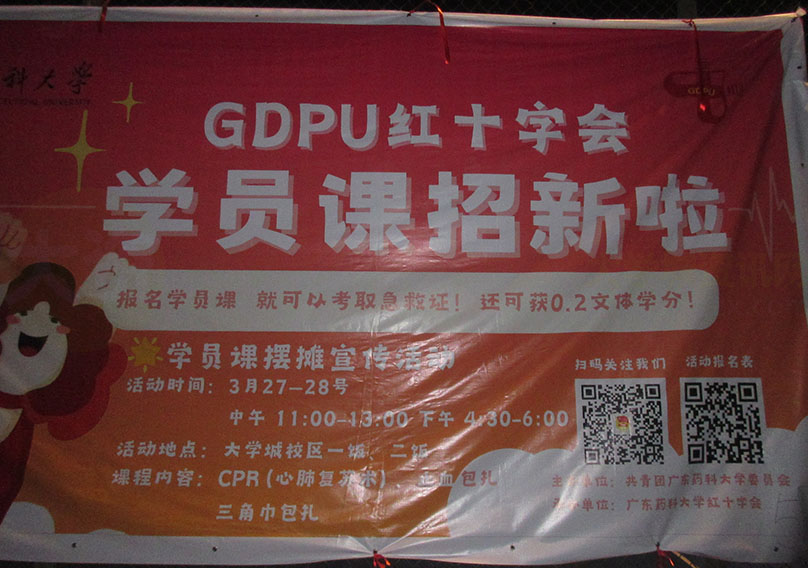 | GDPU红十字会学员课招新 3月27-28号 中午11点-13点 下午4点30-6点 生活区一二饭门前 扫码获取报名表 | ||||||