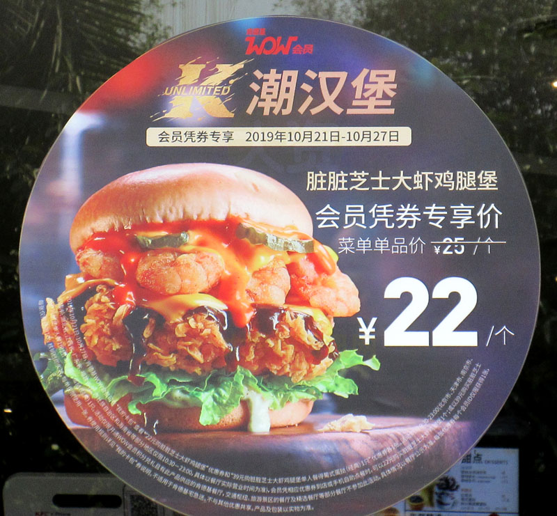 肯德基-潮汉堡-脏脏芝士大虾鸡腿堡 会员凭券专享价 单品价25元只需22元 有效期10月21日起一周时间