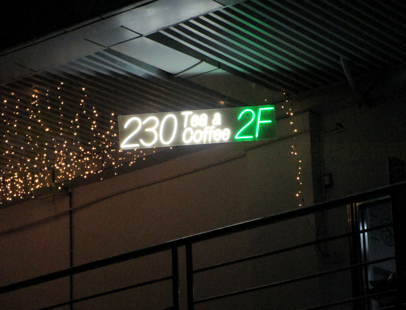 | 最近看到,商中天桥侧,半露天阳台,晚上亮灯了,细看是230咖啡新增的空间 | ||||||