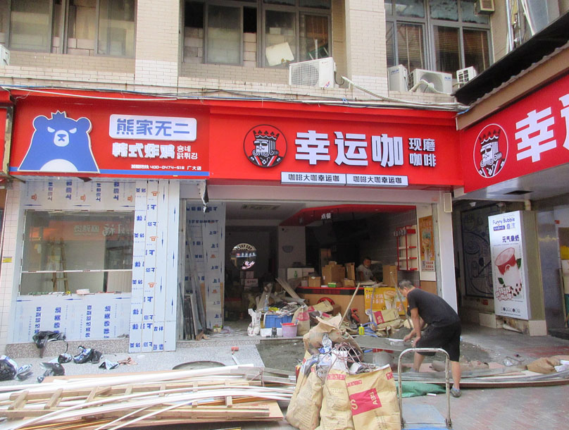 | 广大商中A区南横座西北角之前说看到是做咖啡的,现在进一步拆装后,看到旁边还隔出一个小间是卖炸鸡的,看来这是一家一店两开的组合式门店 | ||||||