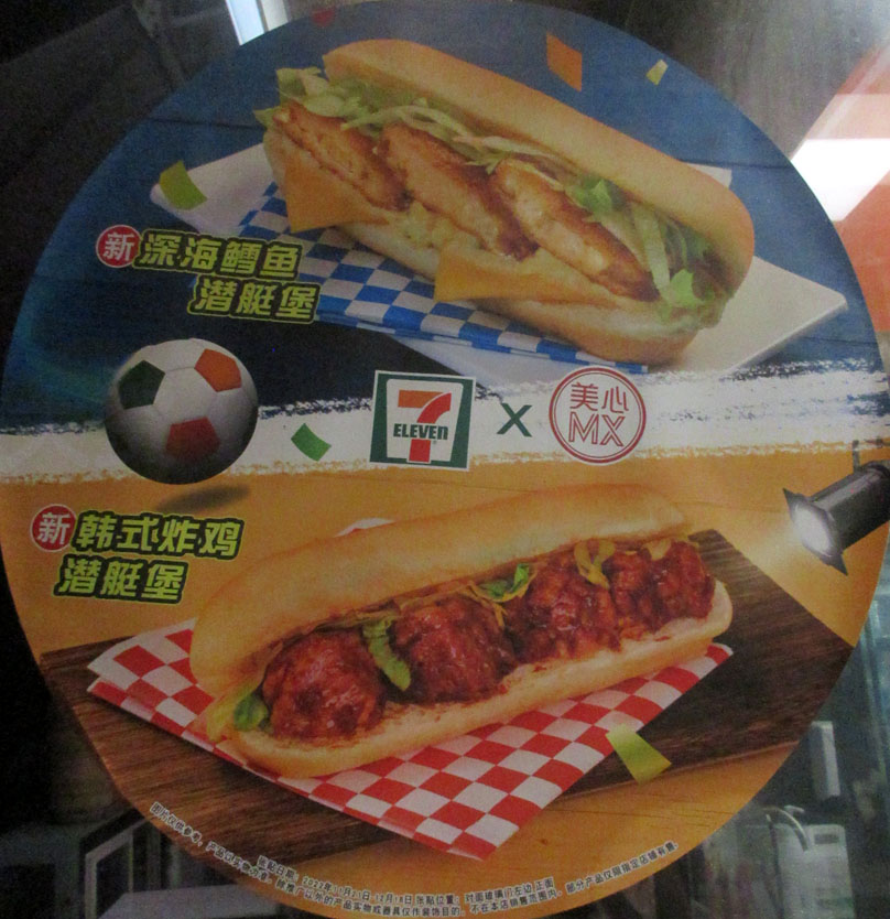 | 广大商中D区中横座东北角 711便利店 新供应:深海鳕鱼潜艇堡&韩式炸鸡潜艇堡 时间11.21-12.18 | ||||||