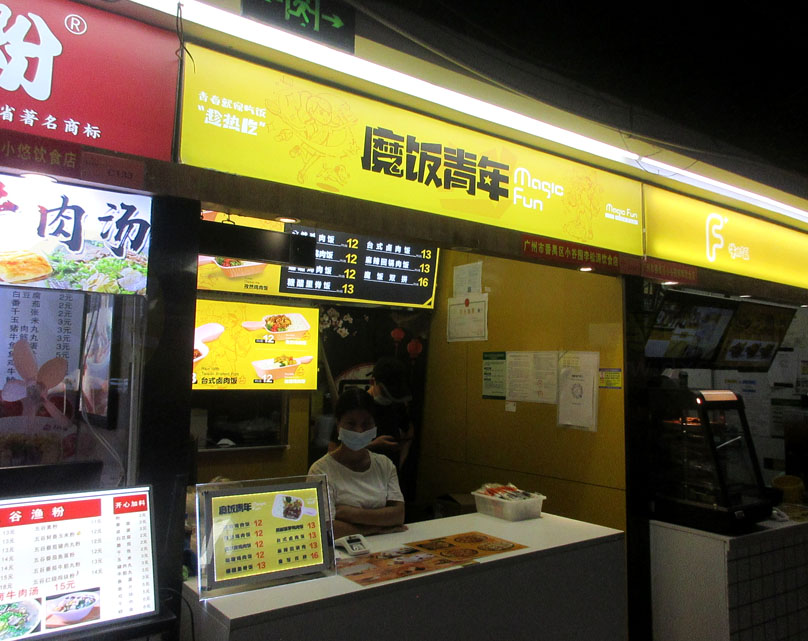 C区一楼美食中心西内场西列中 先前看到在装修的是一家新店叫魔饭青年 目前已开业 似大学城内在广中医二饭一楼也看到有这样家店窗口