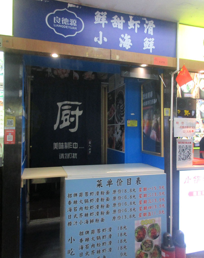 | 广大商中C区一楼美食中心内东区西列中 良德源鲜甜虾滑小海鲜窗口店 问听旁边店主说好像是没开了? | ||||||
