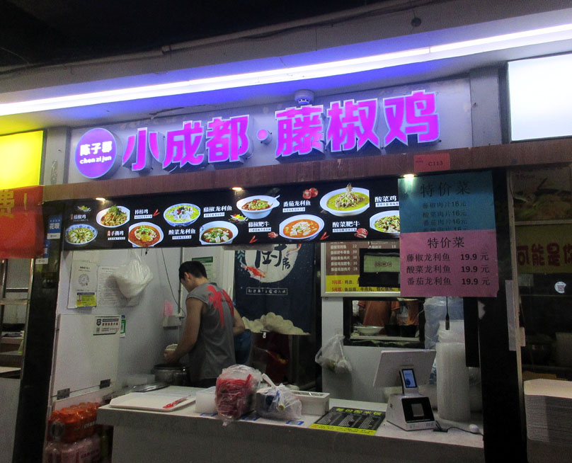 广大商中C区一楼美食中心内东区东列南-小成都·藤椒鸡 特价菜:肉片系列16元,龙利鱼系列19.9元