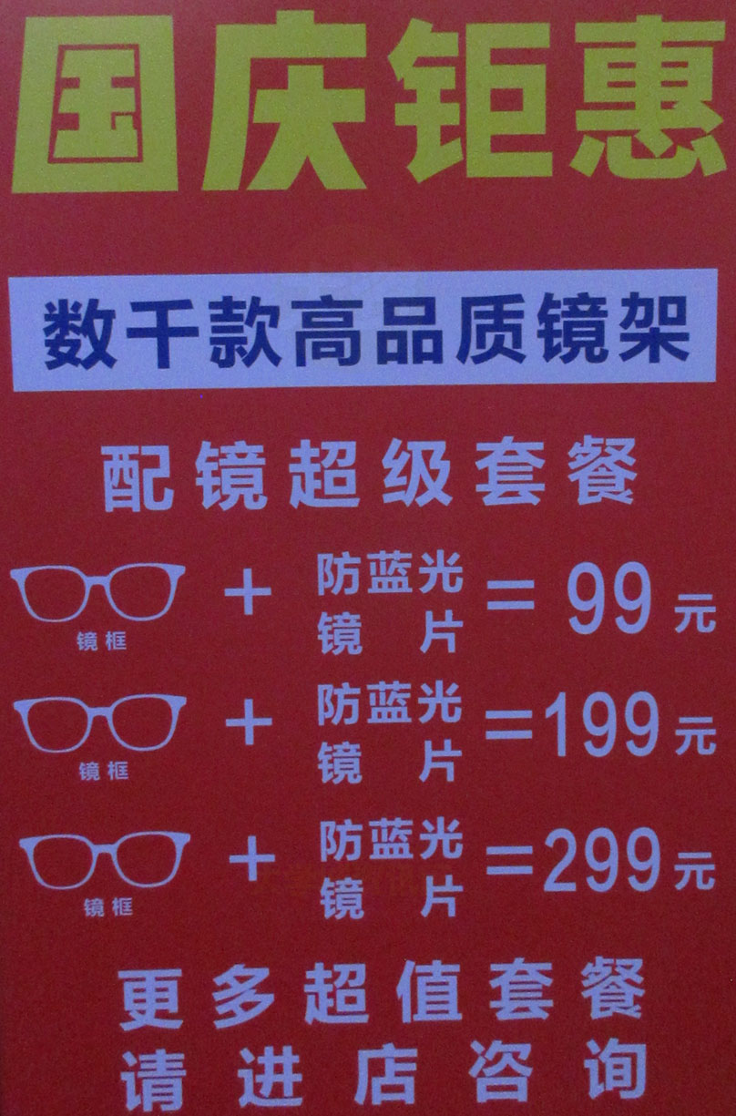 | 广大商中D区西北 快取眼镜超市 国庆钜惠 数千款高品质镜架 配镜超级套餐(镜框+防蓝光镜片=99元&199元&299元) | ||||||