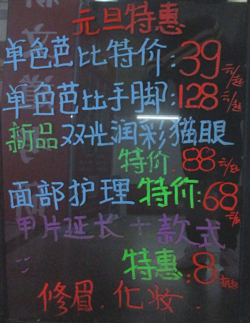 | 广大商业中心D区二楼东侧中楼梯上 珂洛丽美甲形象店 元旦特惠 单色芭比39元 手脚128元 新品双光润彩猫眼88元 面部护理68元 甲片延长+款式8折起 | ||||||