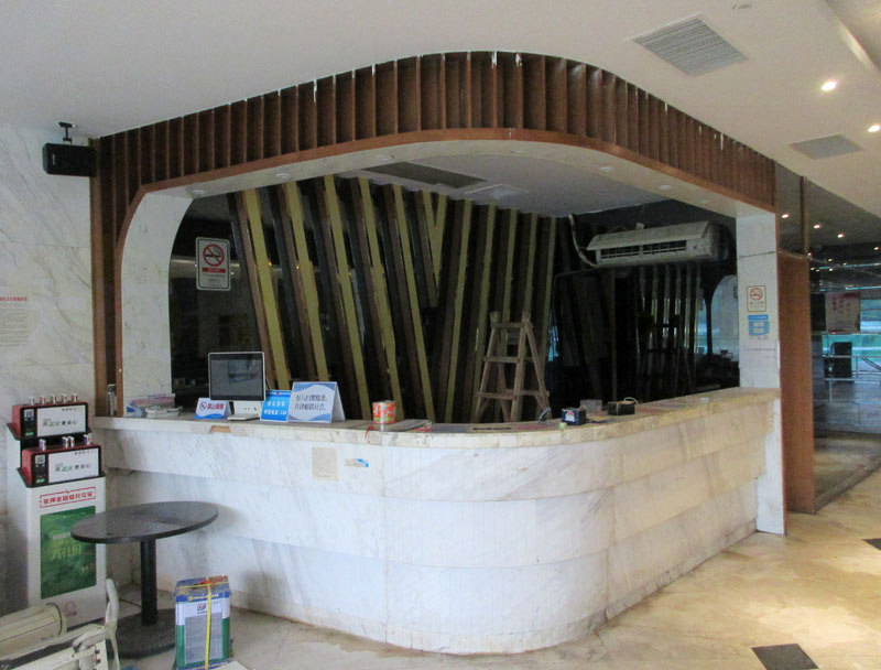 看到这环境,多少促动了不管是听说的将装修还是改出入口到中庭广场那边,如果这边大门外没目前在建楼围隔工地,可能就未必有这边前台大厅装修和改到那边东南角上下进出了