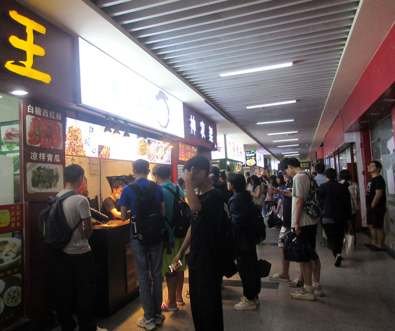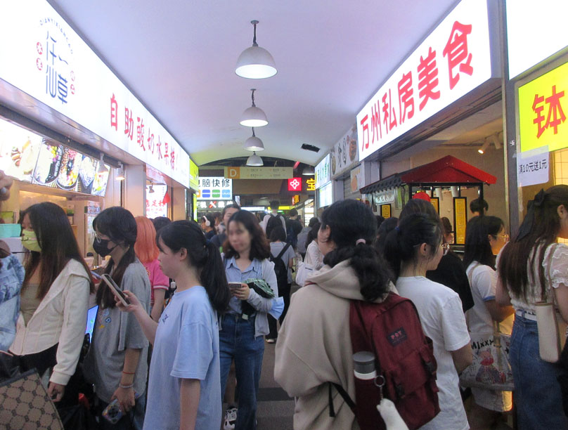 广大商中A区西门直街 近傍晚时分 两边小食店 看着人气都挺旺 最近开学这段时间好像基本都是这样