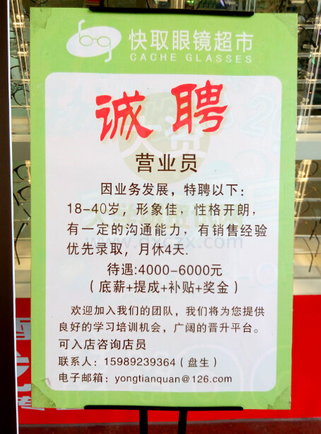 | D区一楼北-快取眼镜超市诚聘营业员 | ||||||