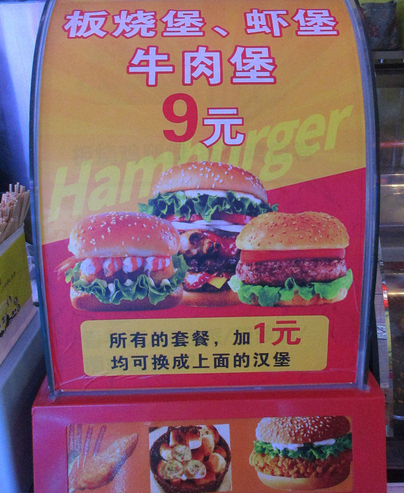 | 商中D区北列外廊道 麦睿基汉堡店 所有套餐+1元均可换成原价9元的板烧堡、虾堡、牛肉堡 其它最新福利-今日特价:鸡块5个5元,鸡小腿2个5元,鸡中翅2个6元 | ||||||
