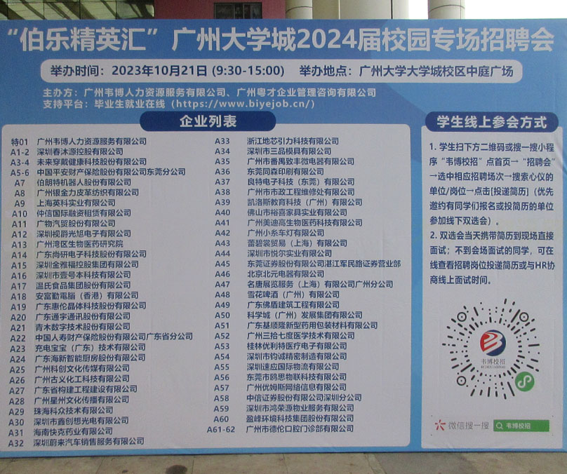 | 10.21伯乐精英汇·广州大学城2024届校园专场招聘会 参会企业列表视看 上午9点半-下午3点 广大商中中庭广场 | ||||||