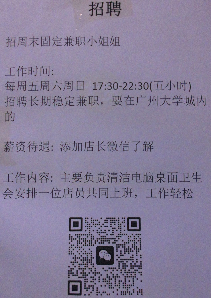 | 广大商中D区三楼-引擎电竞台球俱乐部 招聘周末固定兼职小姐姐 工作时间:每周五周六周日17点30分-22点30 | ||||||