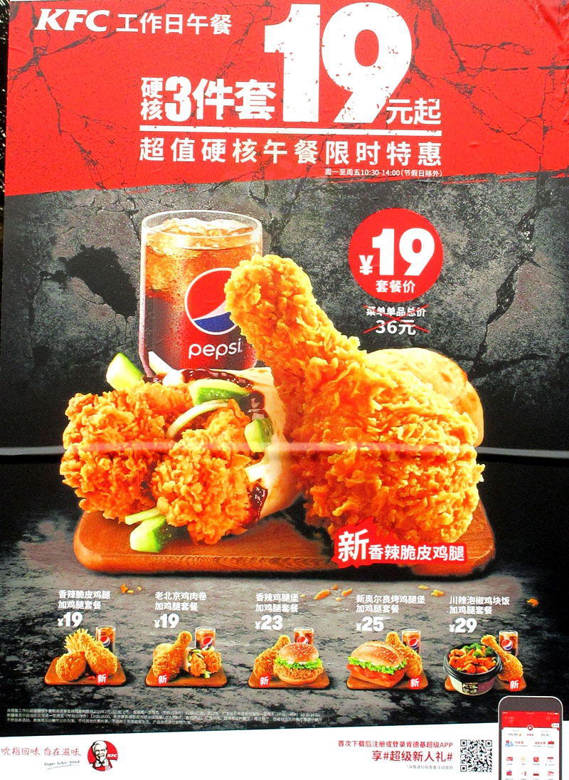 | KFC工作日午餐 硬核3件套19元起 新香辣脆皮鸡腿 | ||||||