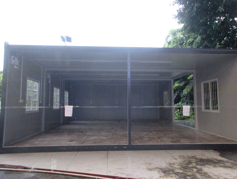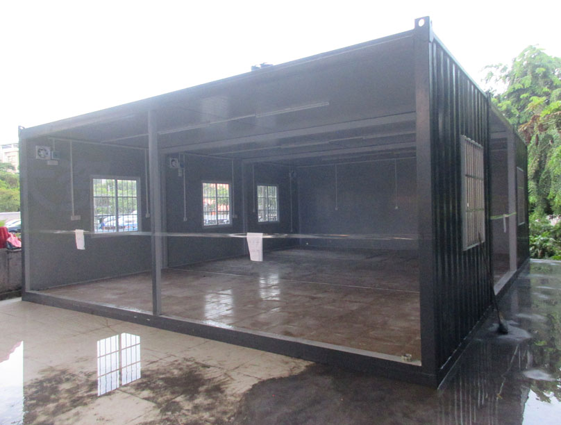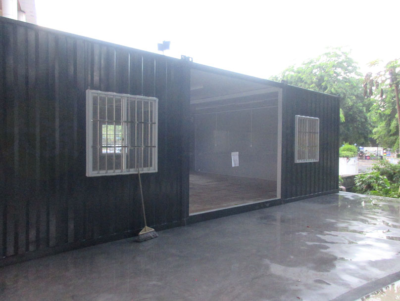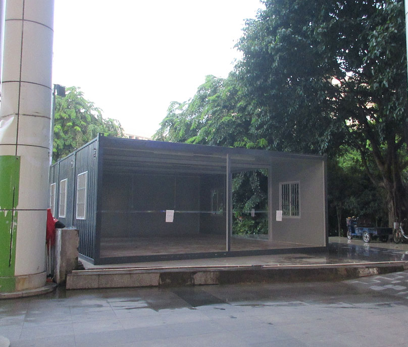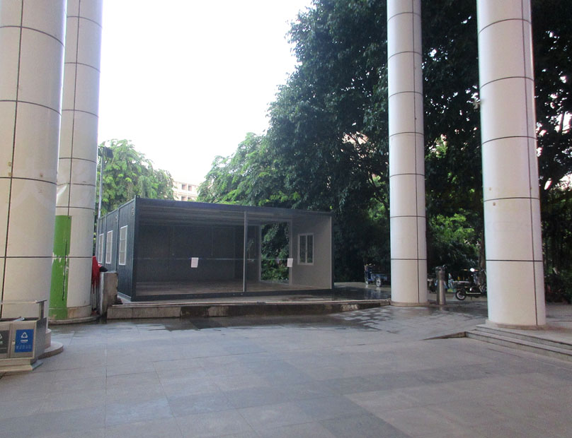 广大商中中庭广场东南角外&地下停车场出楼梯口南侧平台 新装筑了外表看是三个集装箱式的联合体空间 西侧门全墙体宽对开,南侧中间也有个较小开口 听说是用来做快递收取寄递点 但还不确是哪家快递或哪几家 这个位置的平台较早前也是有两个建筑房体门店的(好像是一家修手机和一家书店),后来拆了此处就一直空着,现在也是难得看到地面上又有新立体