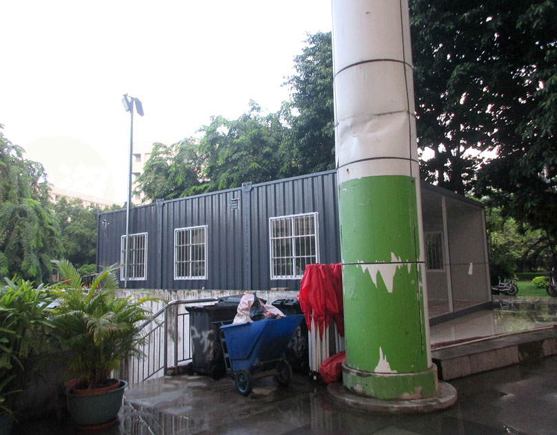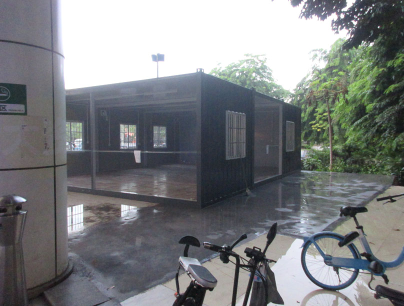 | 广大商中中庭广场东南角外&地下停车场出楼梯口南侧平台 新装筑了外表看是三个集装箱式的联合体空间 | ||||||
