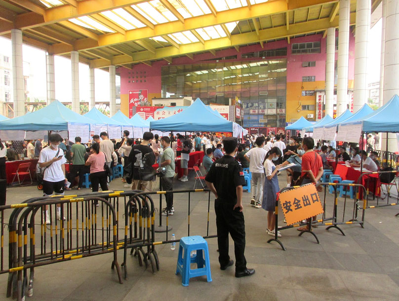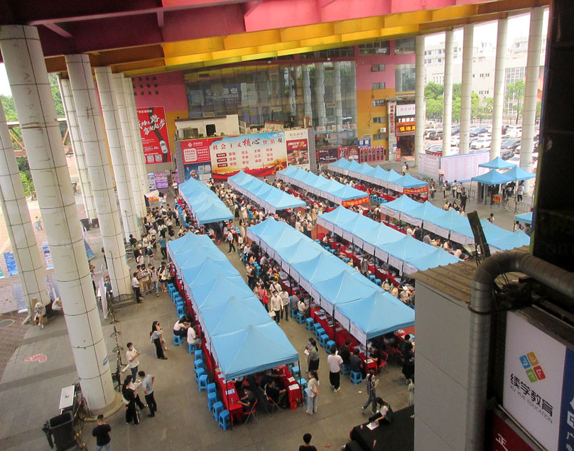 大学城(秋季)新学期的首场招聘会 今天上午开始 在广大商业中心中庭广场进行 近中午时分 现场看到还算是有不少些人 或走动随看或应聘咨询等
