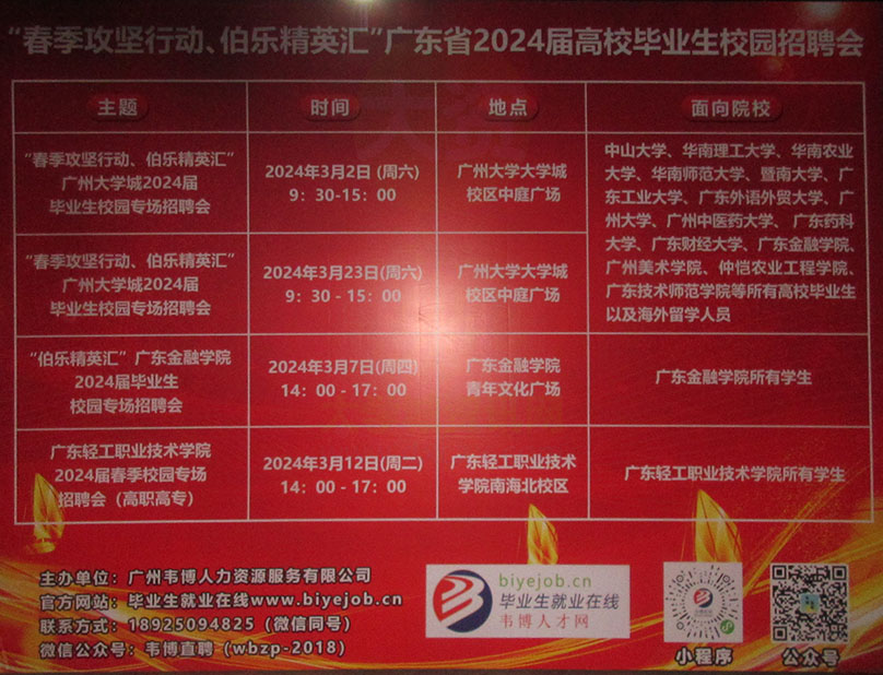 广州大学城2024届毕业生校园专场招聘会 2024.03.02周六 及 03.23周六 上午9点30-下午15点 商中中庭广场