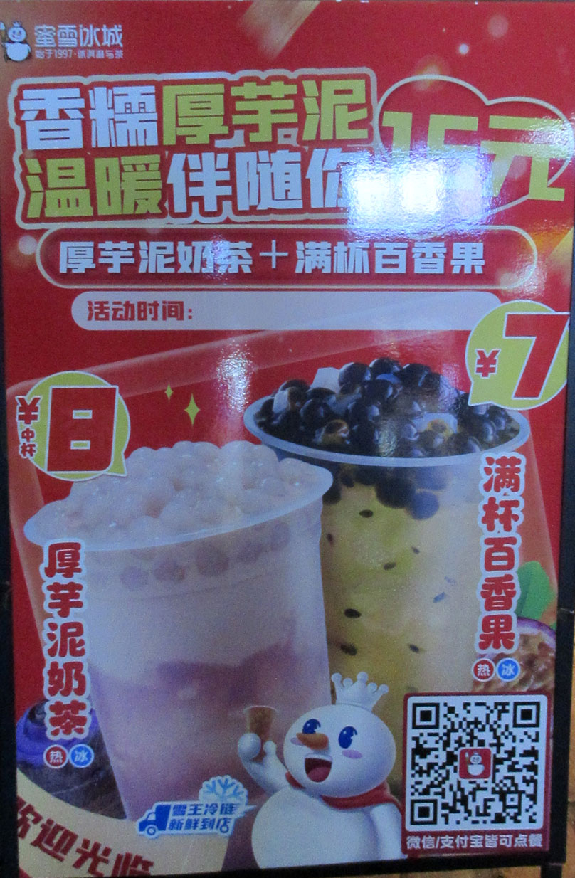 GOGO西街中 蜜雪冰城 香糯厚芋泥奶茶+满杯百香果组合15元;脆筒换新味经典升级,芝麻香香脆仅售2元