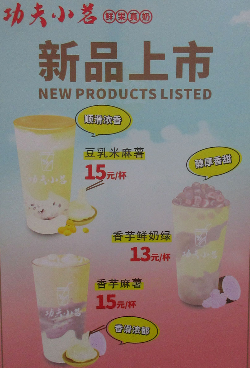 | 商中C区美食中心 功夫小茗 新品上市 豆乳米麻薯15元1杯,顺滑浓香;香芋鲜奶绿13元1杯,醇厚香甜;香芋麻薯15元1杯,香滑浓郁 | ||||||