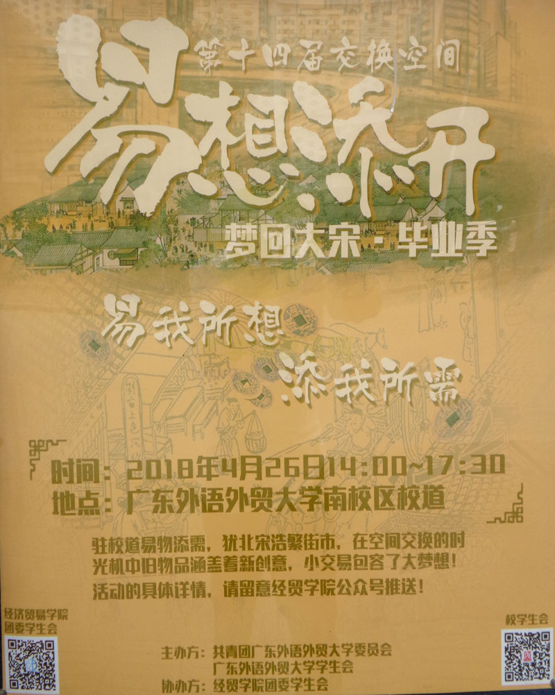 | 【易想添开】第十四届交换空间 2018年4月26日14:00-17:30 生活区主干道中段 | ||||||