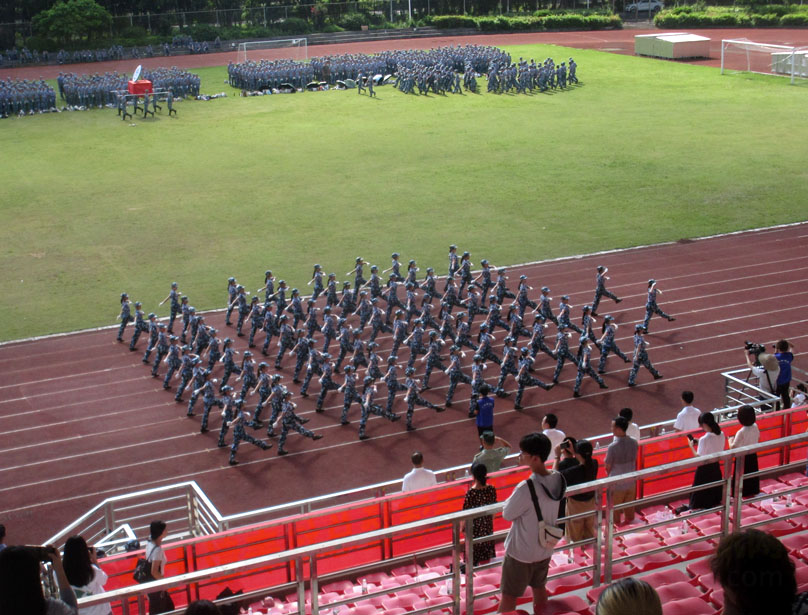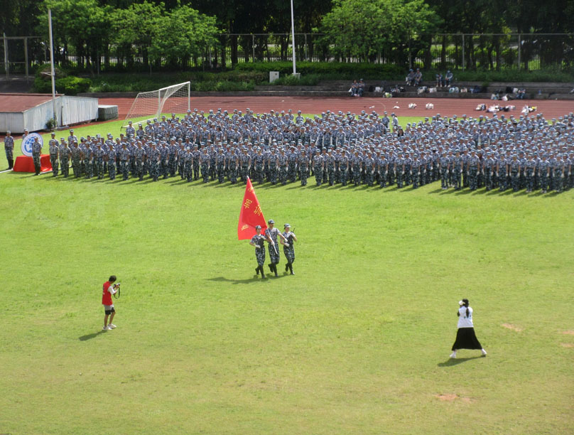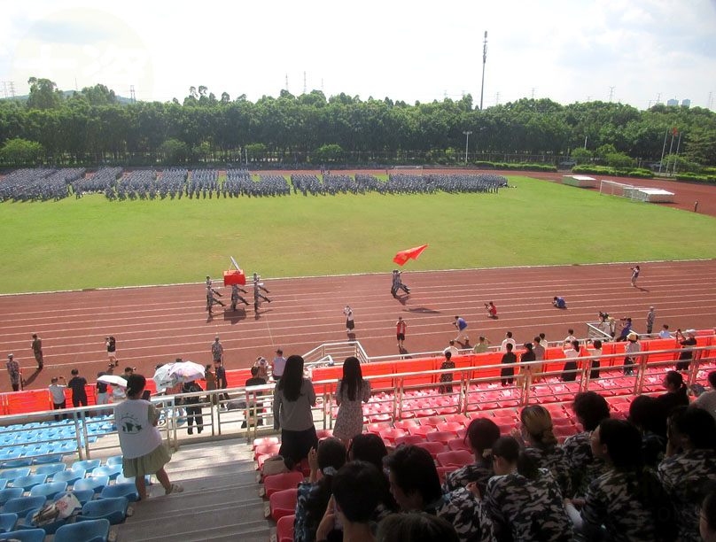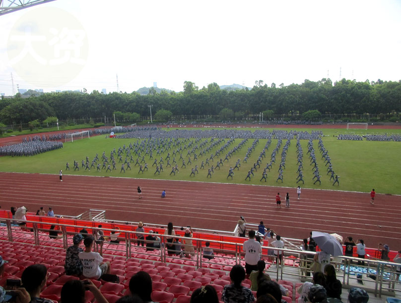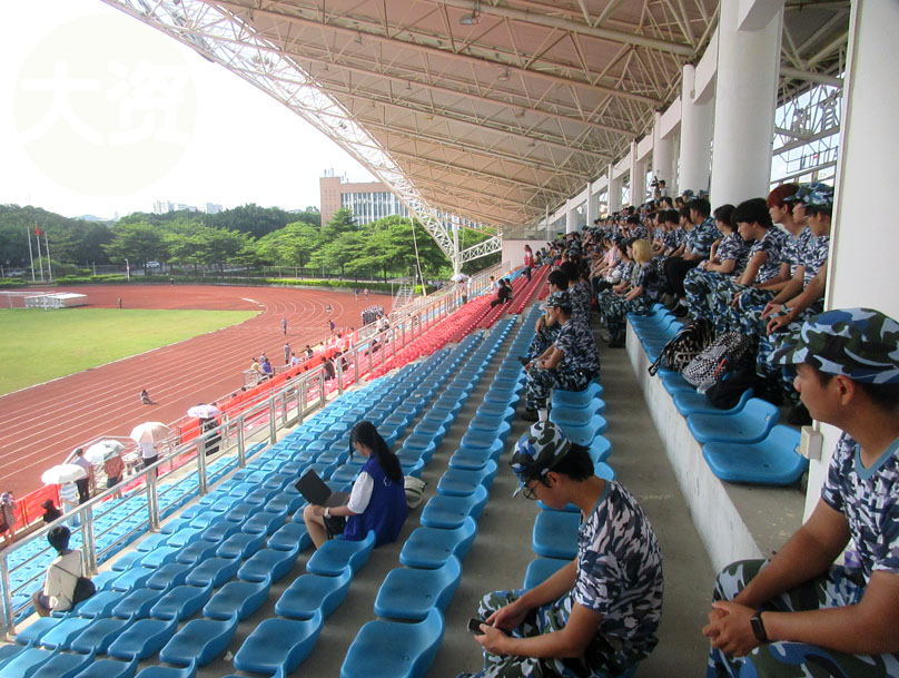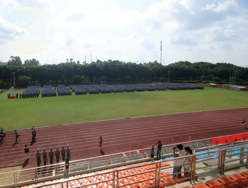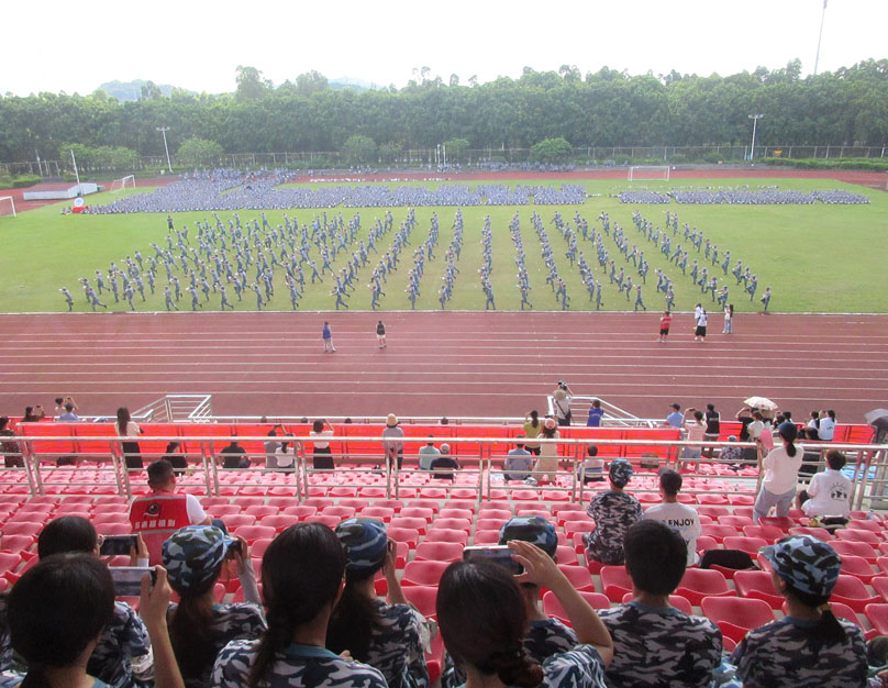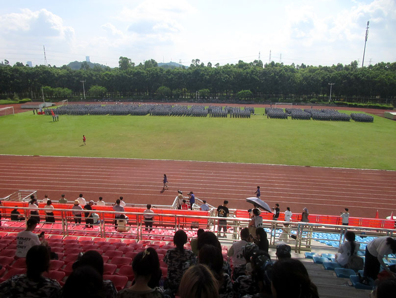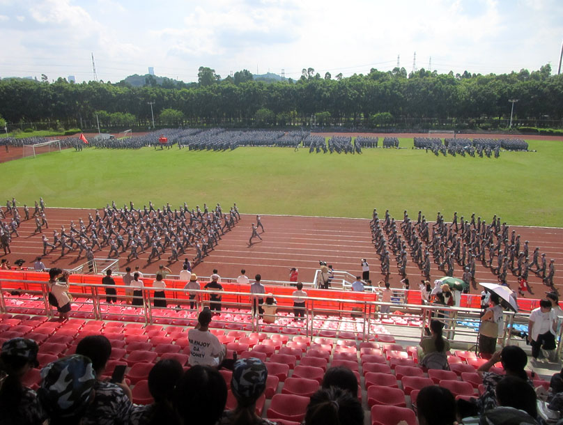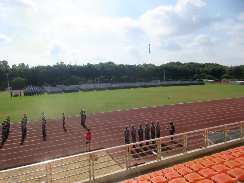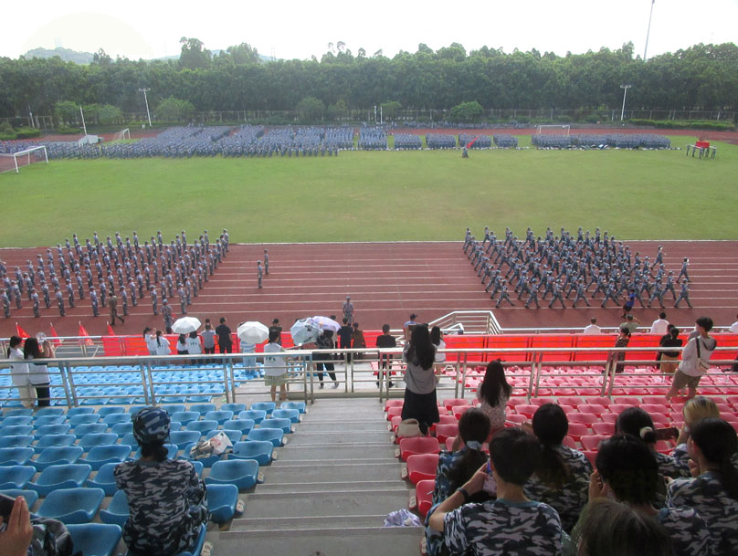 广东外语外贸大学2022级本科学生军训汇报表演暨总结表彰大会 今上午在教学区体育场进行 大约上午9时开始到10点过 现场太阳天气时多较为照晒 不管怎样大家这个为期两周的军训之旅也算完满结束 即将开启炎热酷暑的夏季暑假