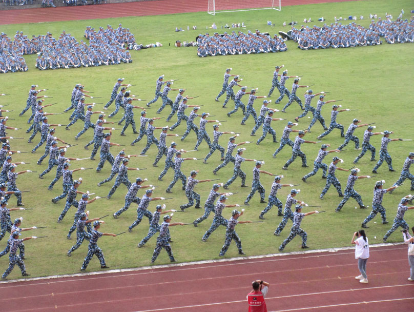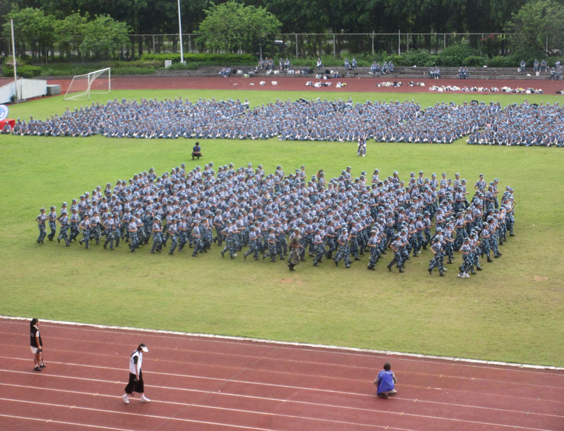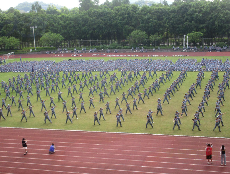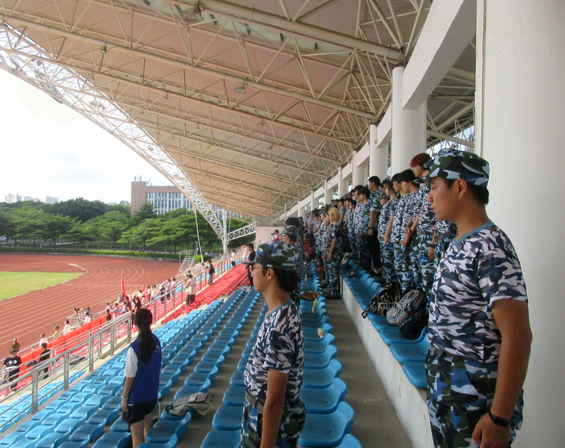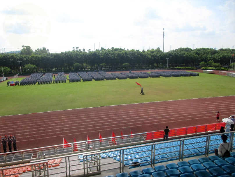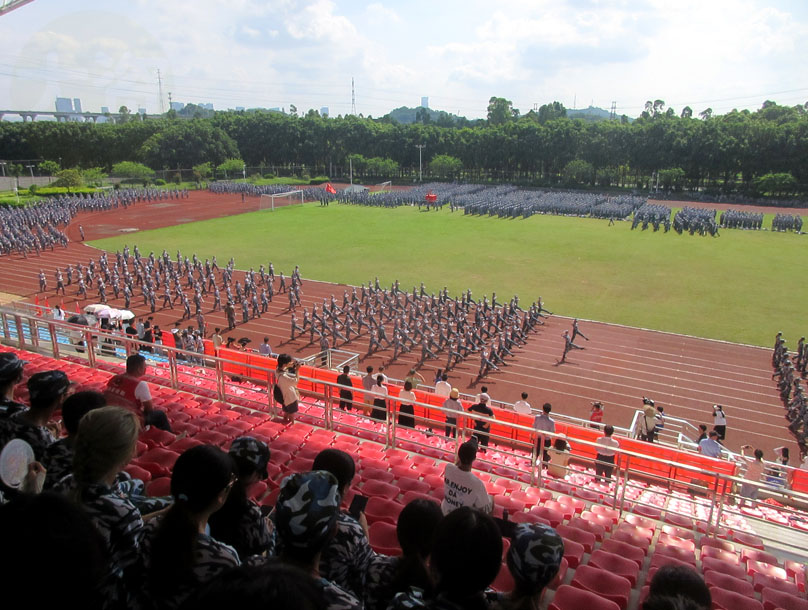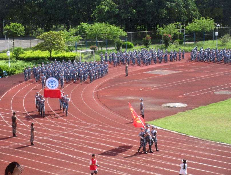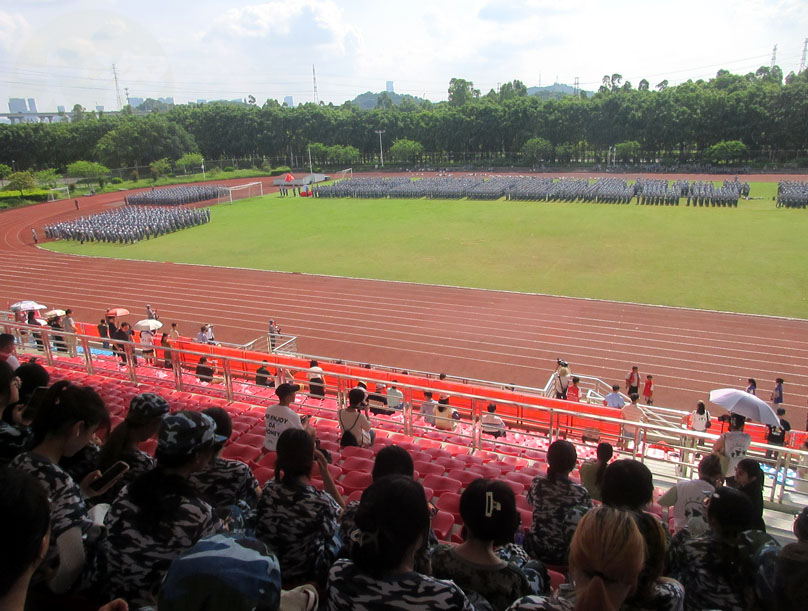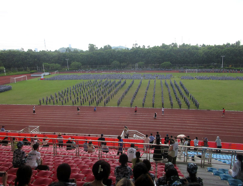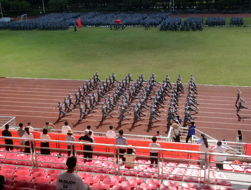 广东外语外贸大学2022级本科学生军训汇报表演暨总结表彰大会 今上午在教学区体育场进行 大约上午9时开始到10点过 现场太阳天气时多较为照晒 不管怎样大家这个为期两周的军训之旅也算完满结束 即将开启炎热酷暑的夏季暑假