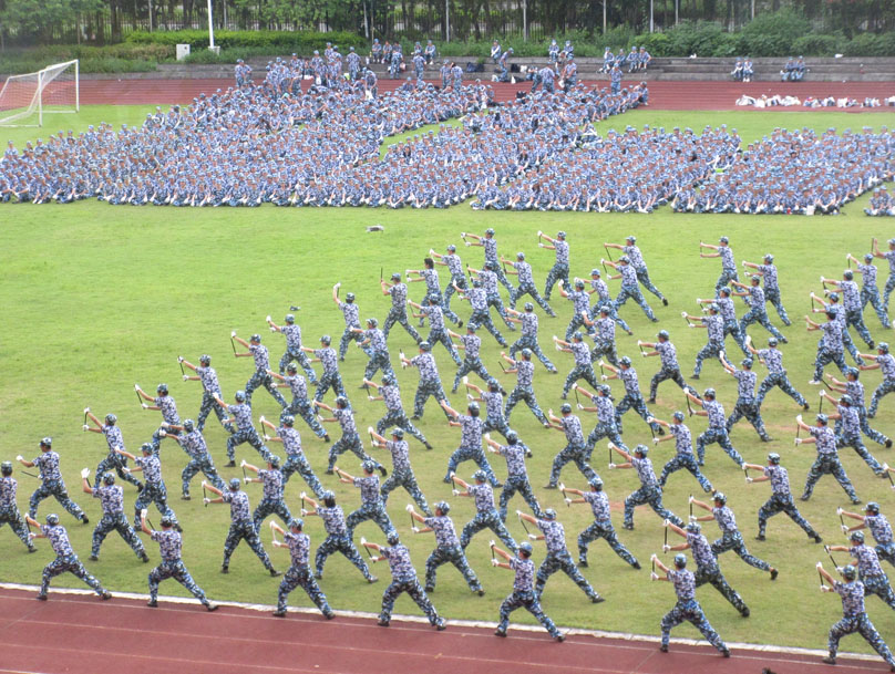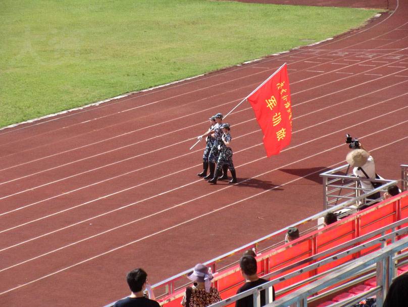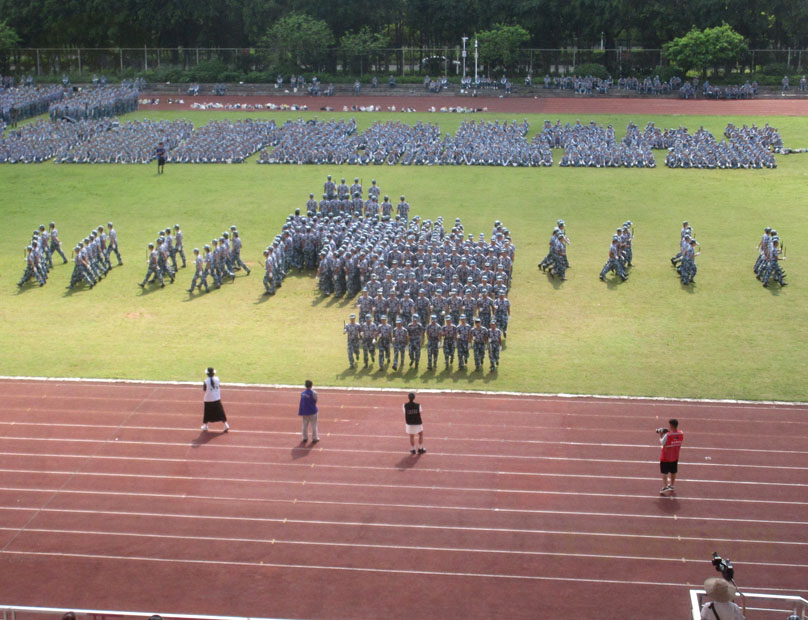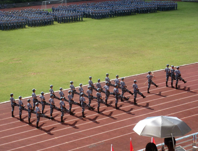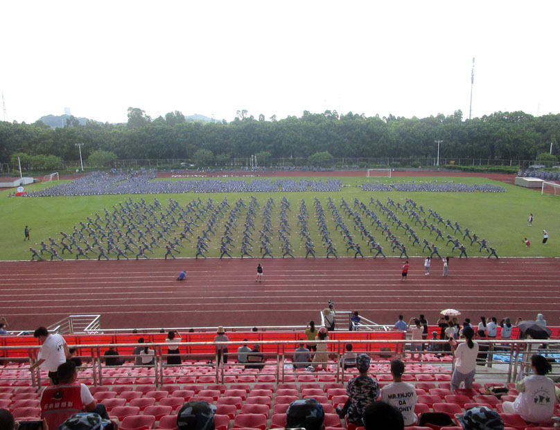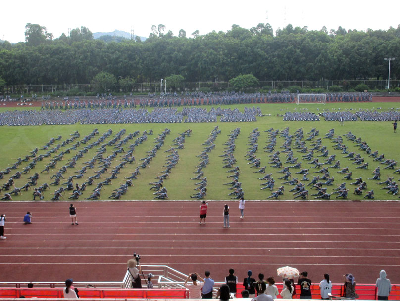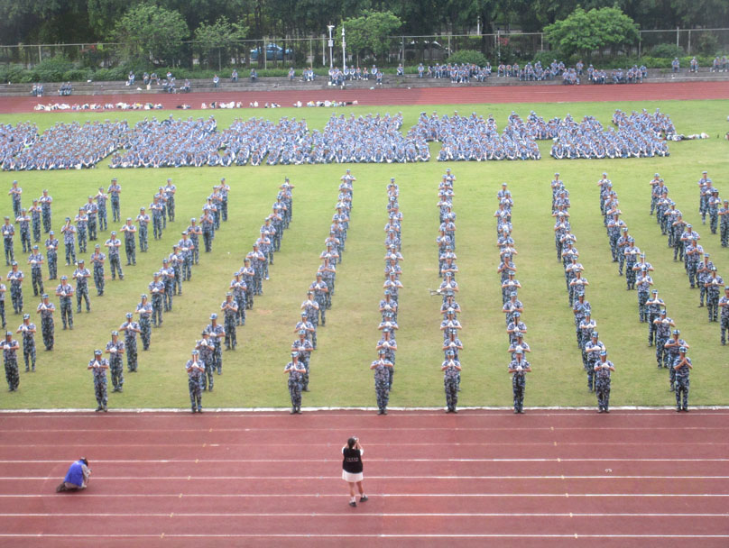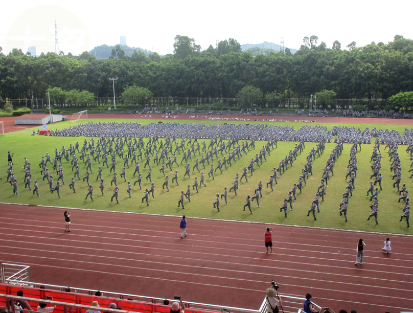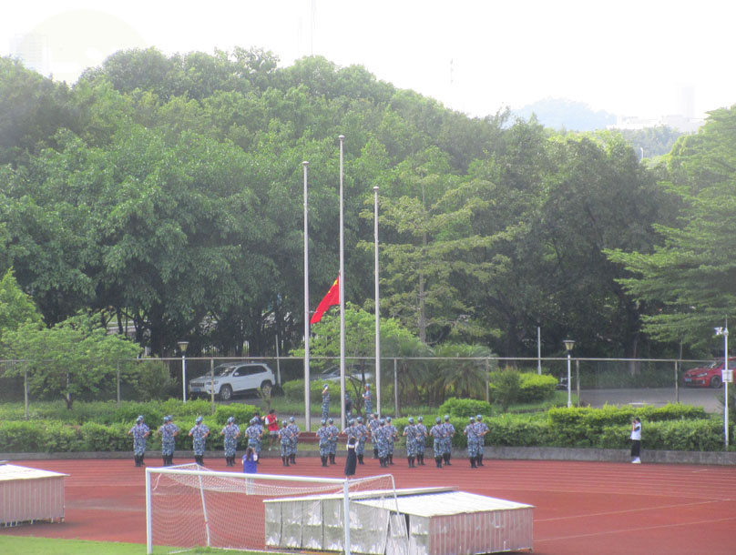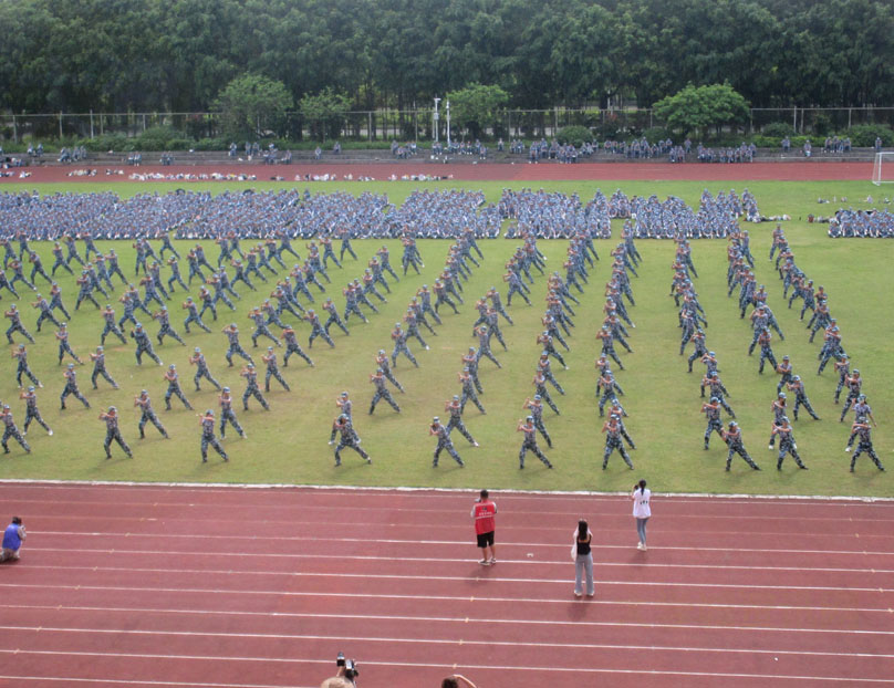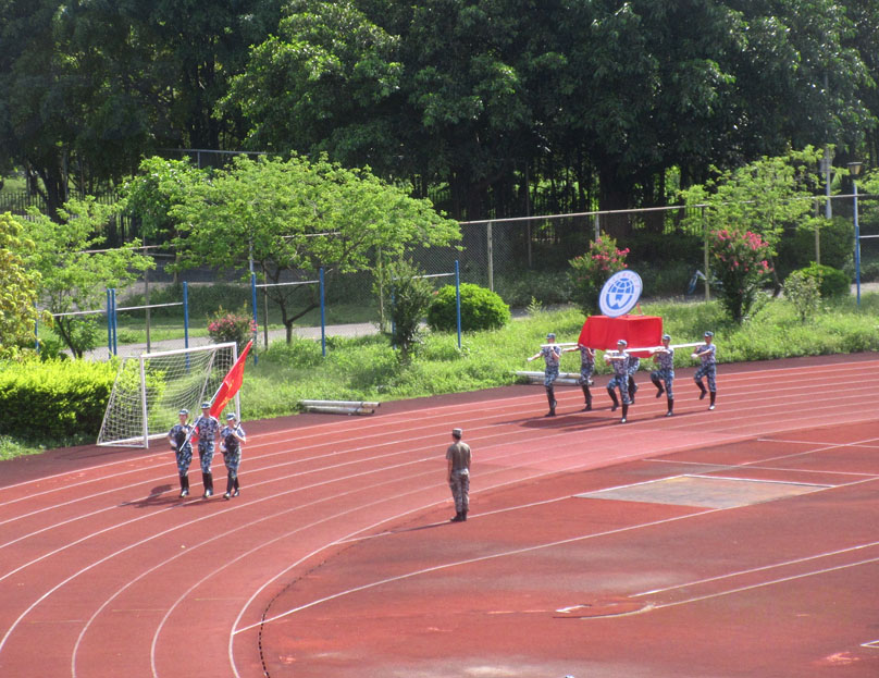 广东外语外贸大学2022级本科学生军训汇报表演暨总结表彰大会 今上午在教学区体育场进行 大约上午9时开始到10点过 现场太阳天气时多较为照晒 不管怎样大家这个为期两周的军训之旅也算完满结束 即将开启炎热酷暑的夏季暑假