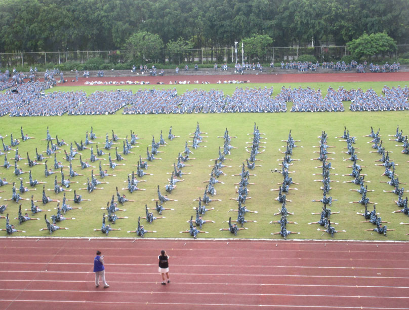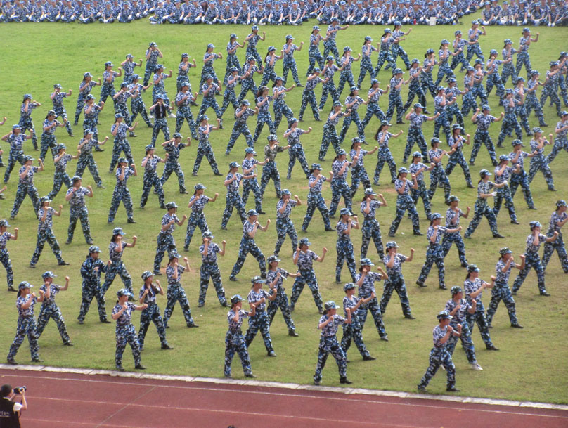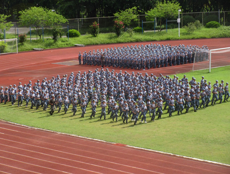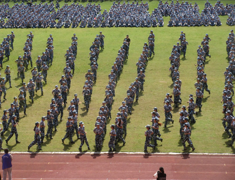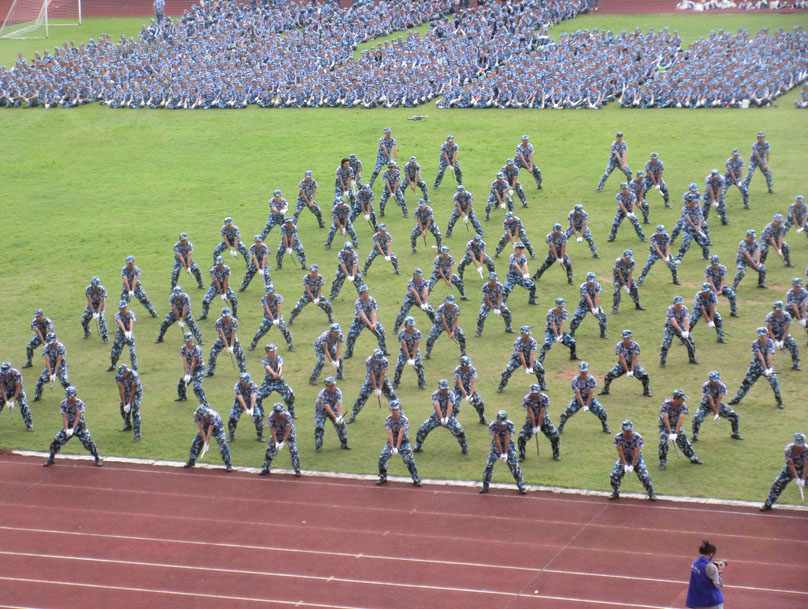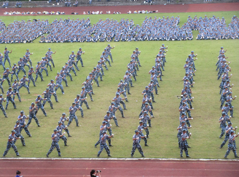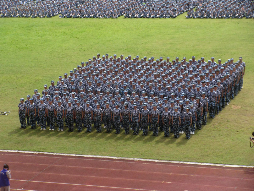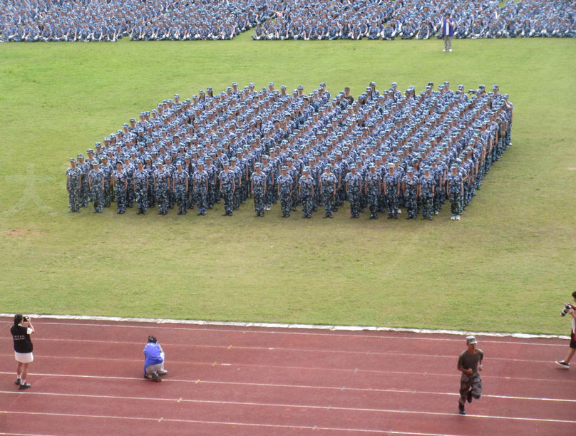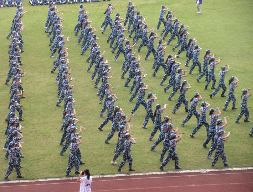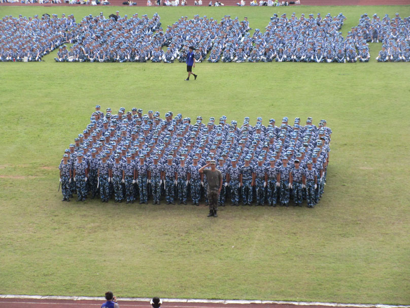 广东外语外贸大学2022级本科学生军训汇报表演暨总结表彰大会 今上午在教学区体育场进行 大约上午9时开始到10点过 现场太阳天气时多较为照晒 不管怎样大家这个为期两周的军训之旅也算完满结束 即将开启炎热酷暑的夏季暑假
