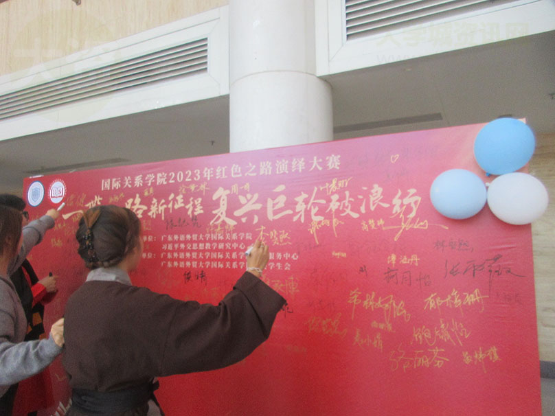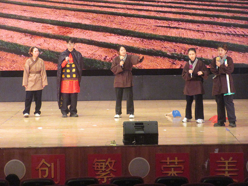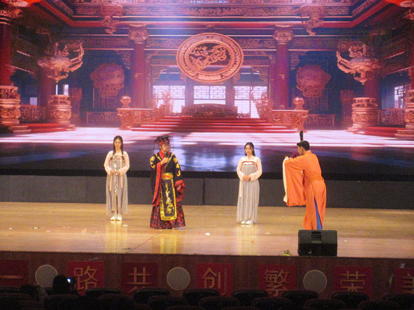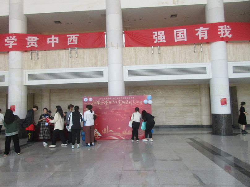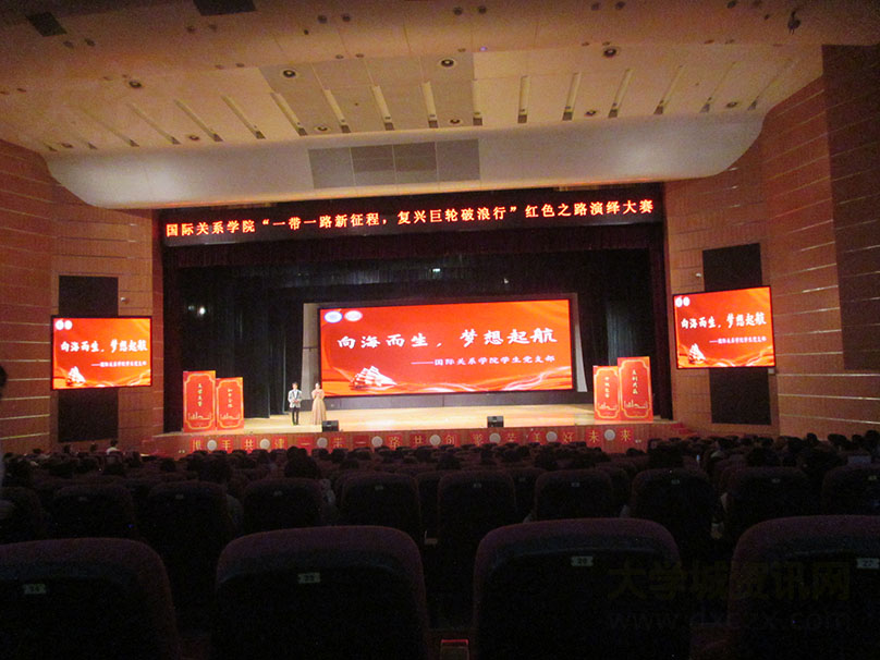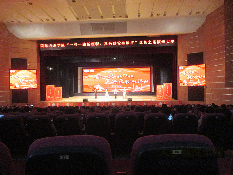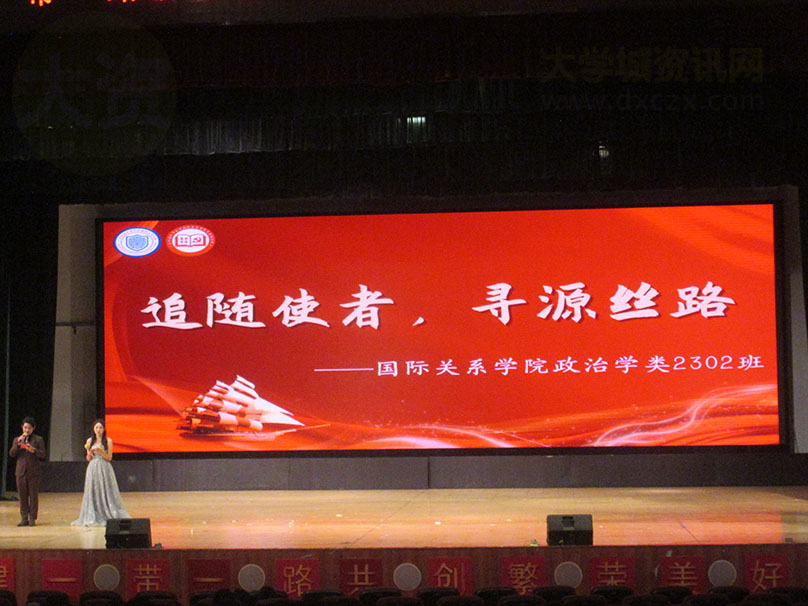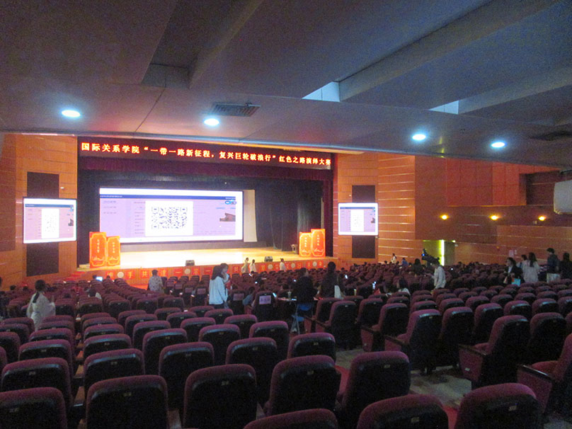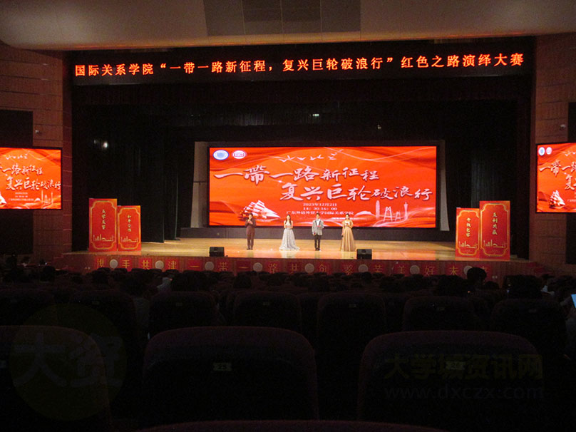 广外-国际关系学院 下午在教学区大会堂 有一个关于一带一路主题的演绎大赛 现场以一些话剧形式为大家呈现