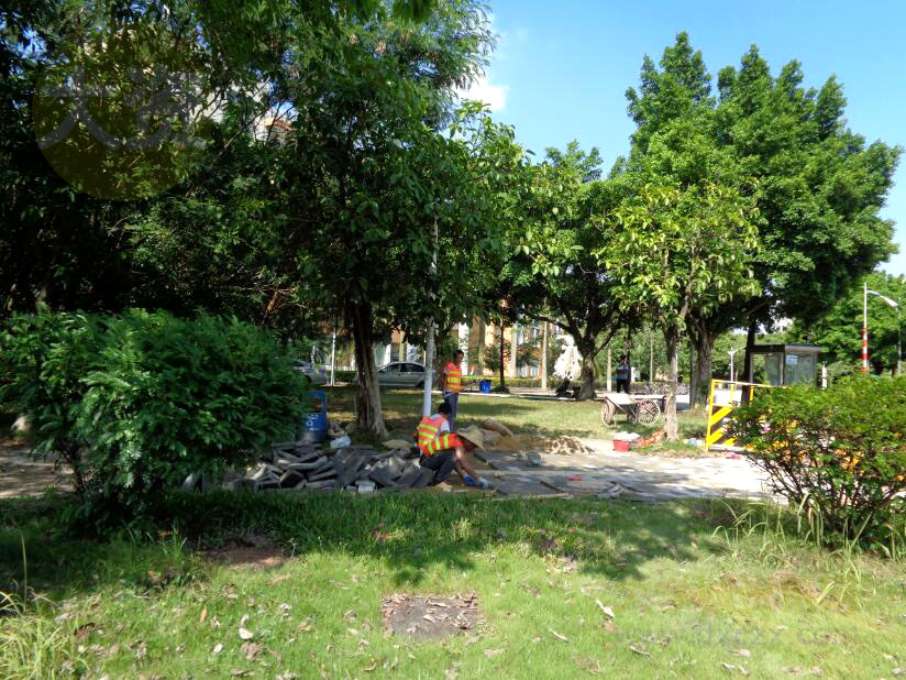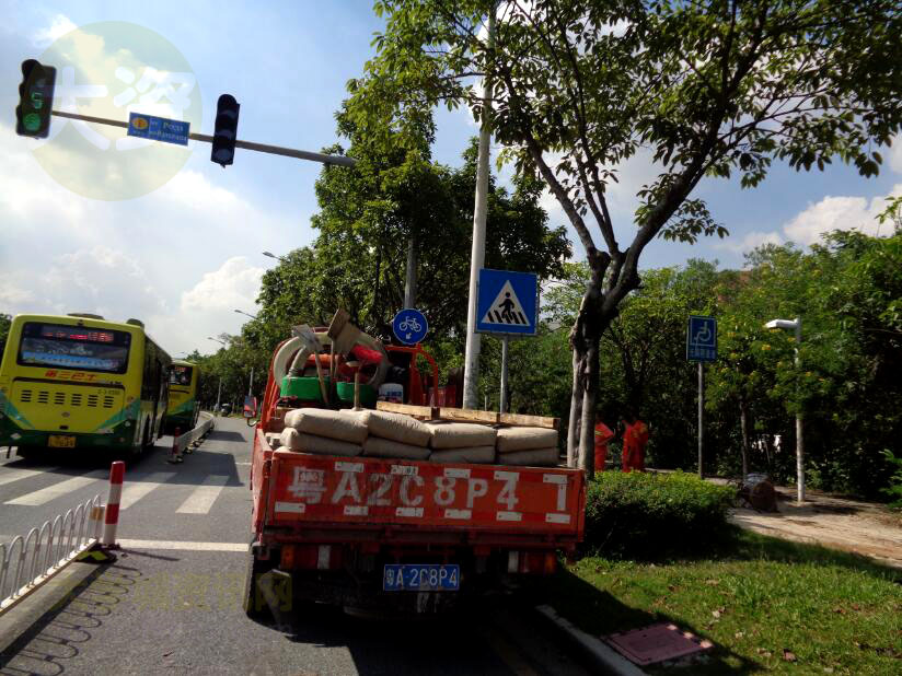 中环广外段正在进行市政施工更换新地砖的铺砌