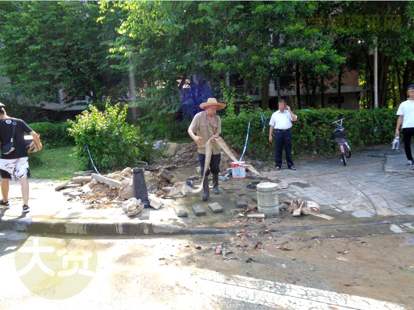 生活区内十字路口正在进行下水道施工