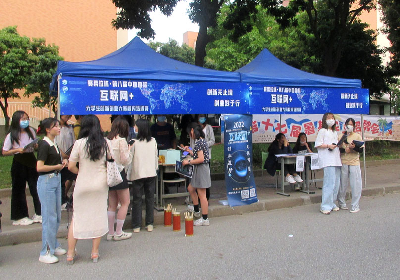 广外 赛莱拉杯·第八届中国国际互联网+创新创业大赛校内选拔赛正在生活区主校道进行摊宣