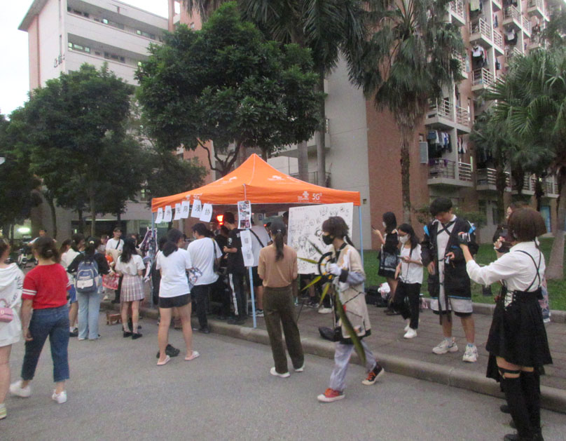 广外无限动漫协会招新活动正在生活区主校道北苑4栋对出侧进行 |