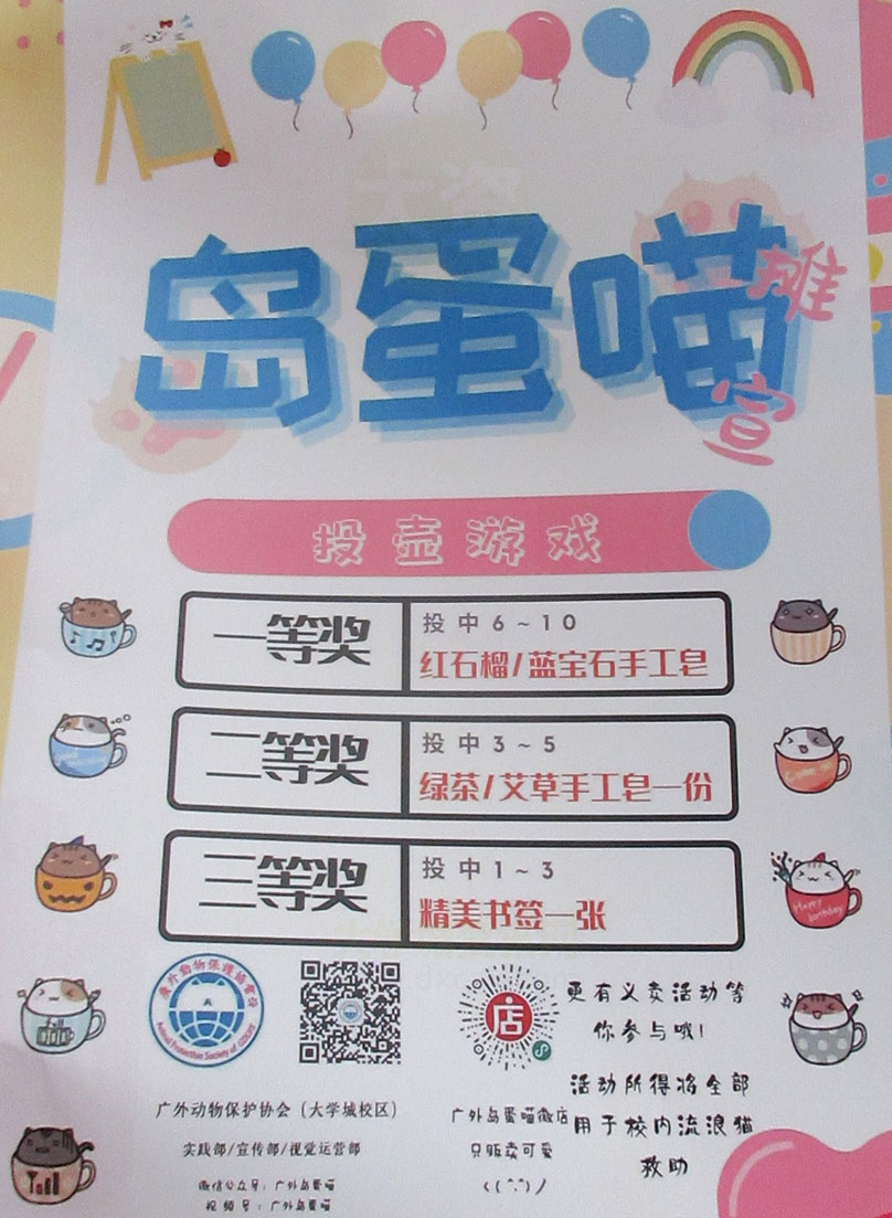 | 广外动物保护协会-岛蛋喵活动正在生活区主校道4栋对出对面进行 | ||||||
