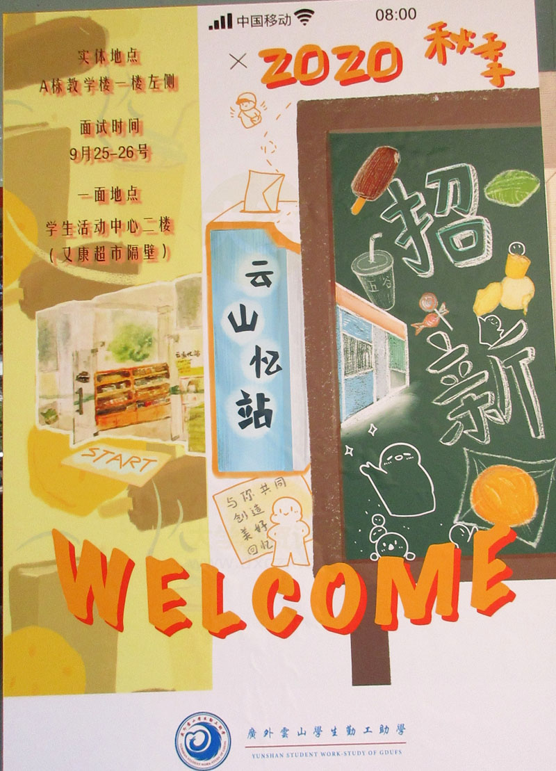 | 云山忆站2020秋季招新 地点:A栋教学楼一楼左侧 面试时间9月25-26号 一面学活二楼 | ||||||