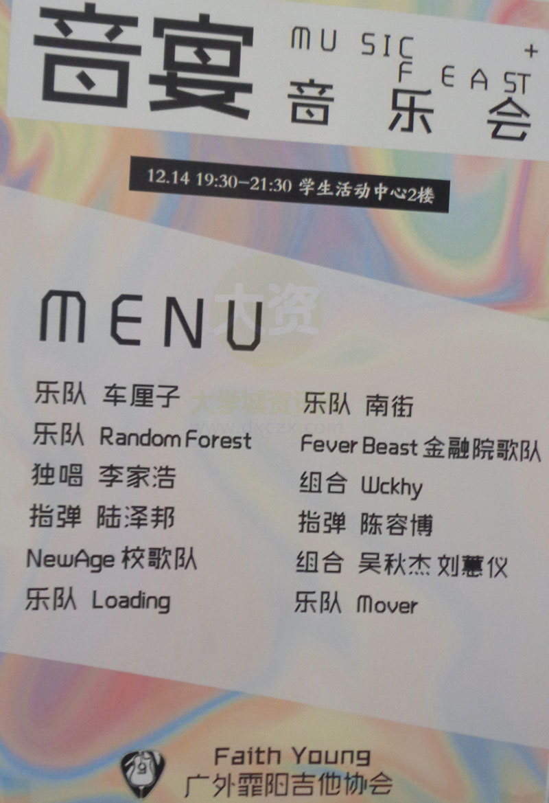| 广外霏阳吉他协会-音宴音乐会 12.14 19:30-21:30 学生活动中心2楼 | ||||||