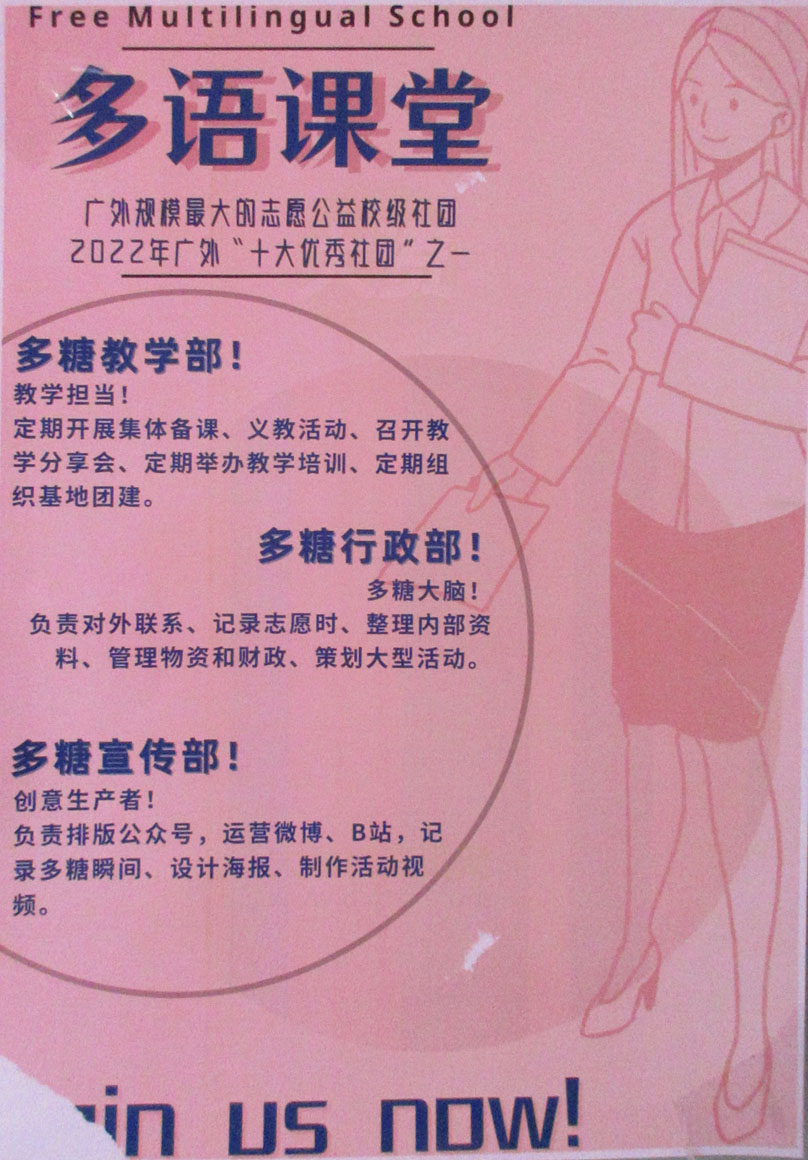 | 多语课堂2022招新-广外规模最大的志愿公益校级社团 多糖教学部&行政部&宣传部 | ||||||