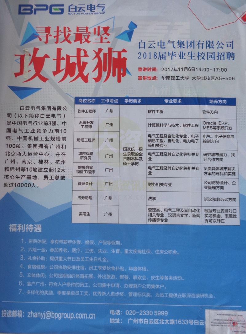 白云电气集团有限公司2018届毕业生校园招聘