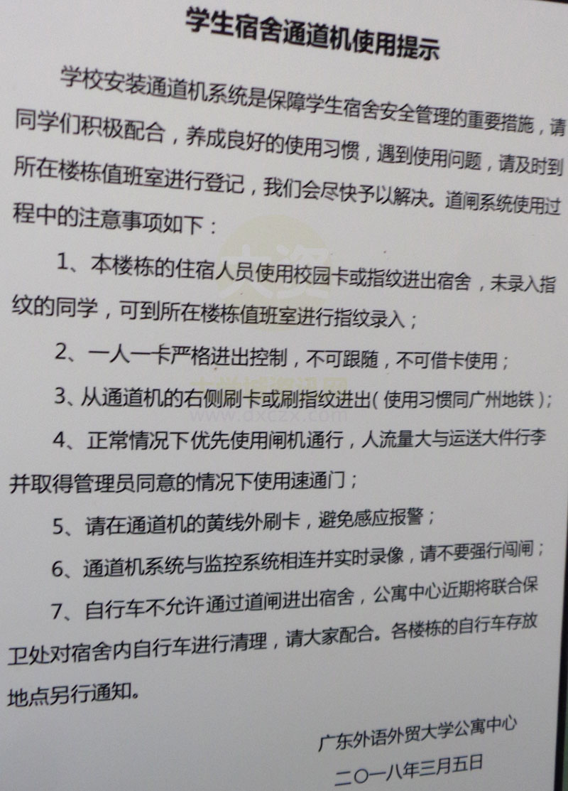 学生宿舍通道机刷卡使用提示