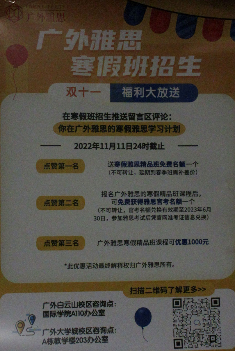 | 广外雅思寒假班招生 双十一福利大放送 扫码了解更多 | ||||||