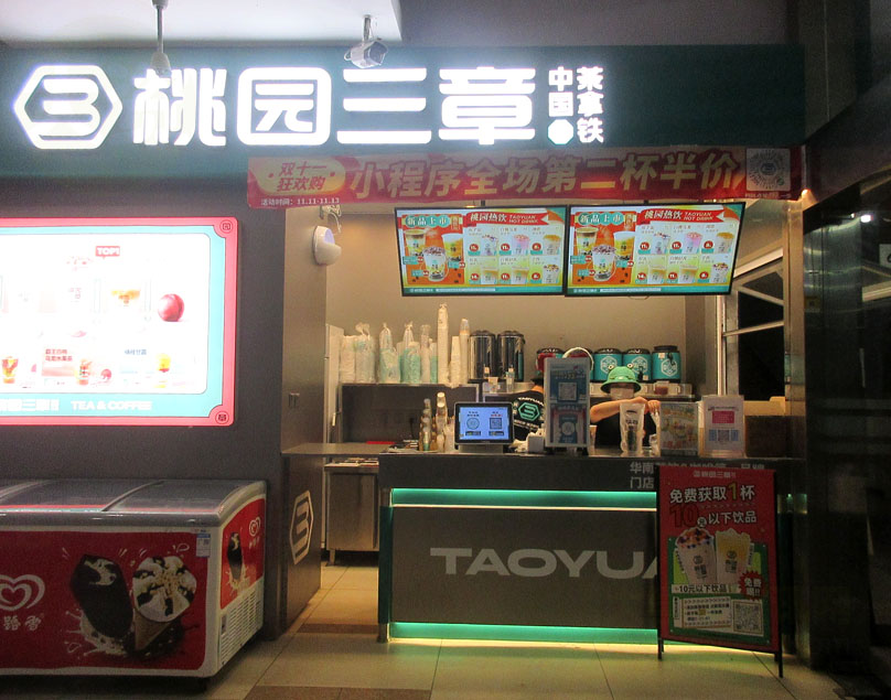 广外三饭风采园一楼入口北侧 桃园三章 朋友圈集赞免费获饮 双十一狂欢购11.11-11.13 小程序下单第二杯半价