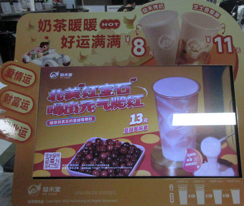 广外生活区三饭风采园二楼南 益禾堂 奶茶暖暖,好运满满 特促-益禾烤奶8元,芝士香栗栗11元;创新搭配-北美红宝石,蔓越莓麻薯13元