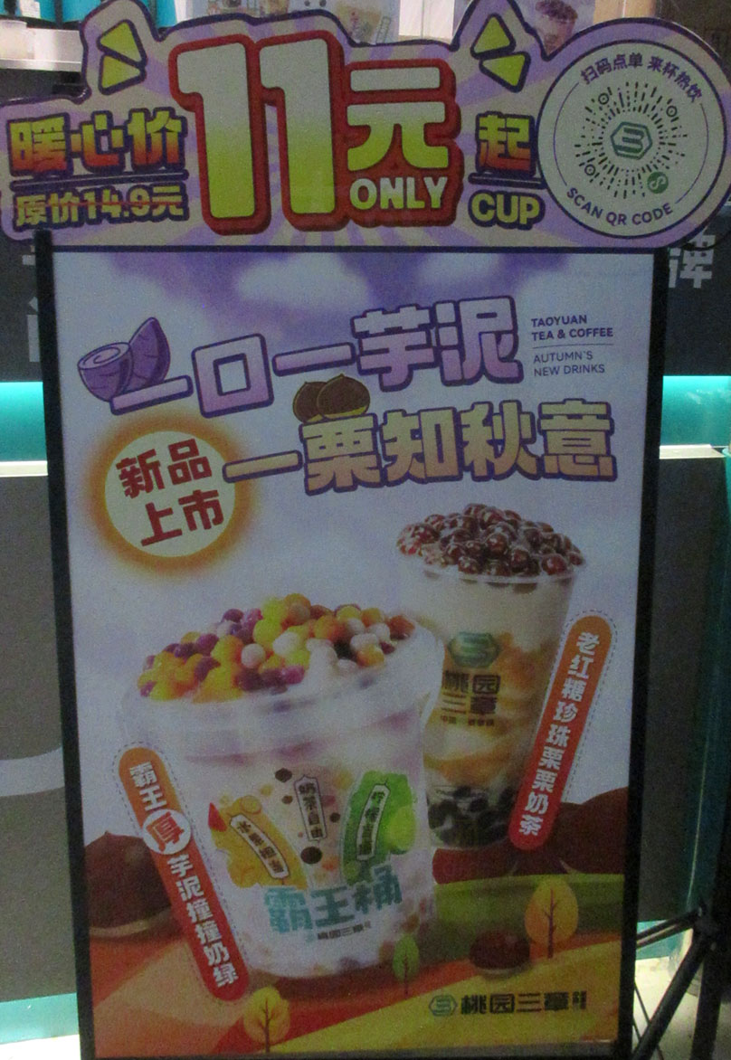 广外生活区三饭风采园一楼正门入口北侧-桃园三章 新品上市:霸王厚芋泥撞撞奶绿、老红糖珍珠栗栗奶茶 均暖心价11元起 原价14.9元