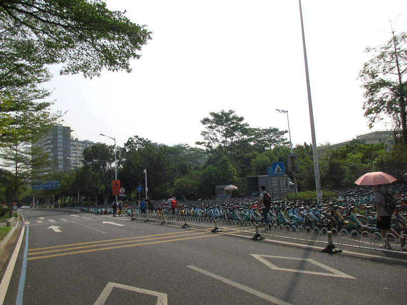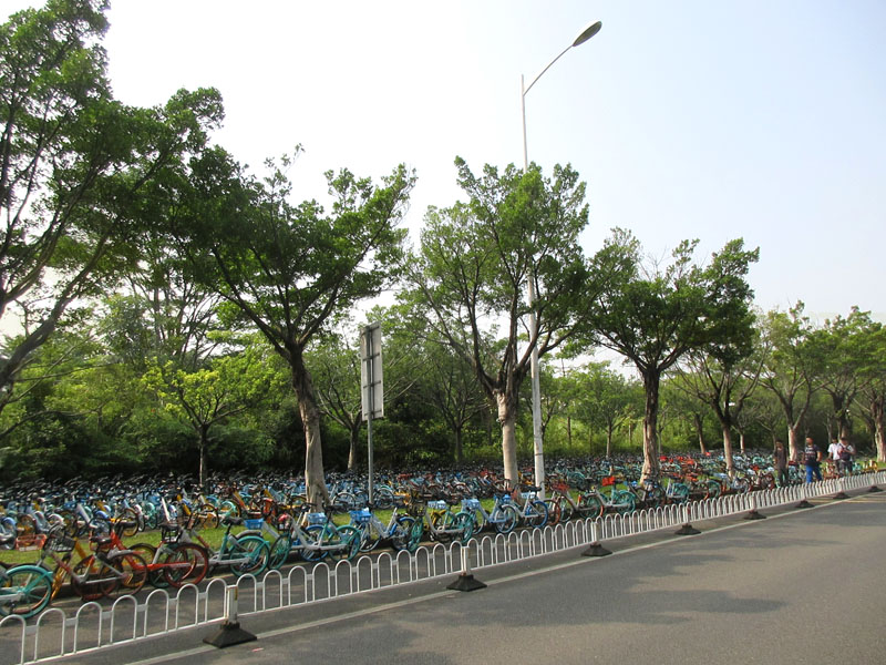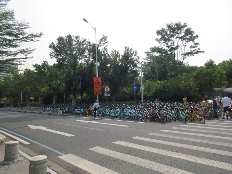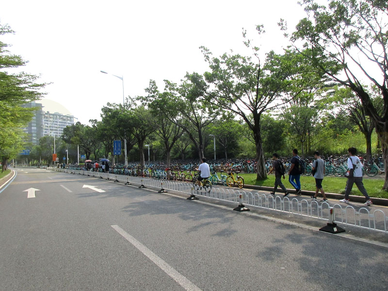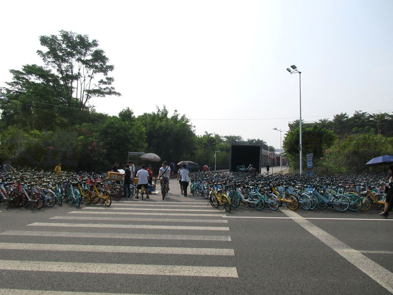 | 教学区不让进,出中环北门外停满共享单车,密密麻麻,堆满一大片 | ||||||