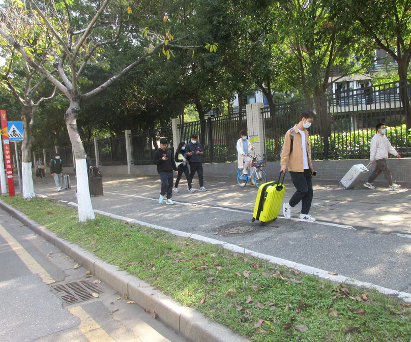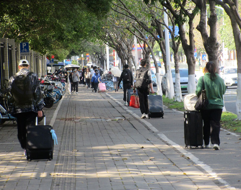 由于广工离南区地铁站较近,尤其是广工东区,所以看到很多学生都是直接出地铁口,就拖拉着行李步行到校 |