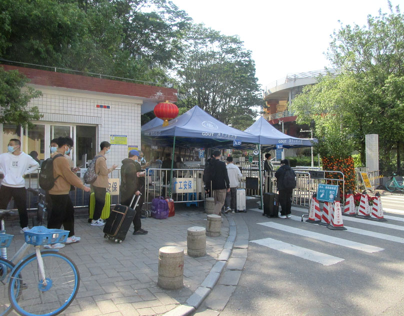 广工东西生活区,今天继续有学生返校 天气依然是相当美好 甚至有几分暴晒