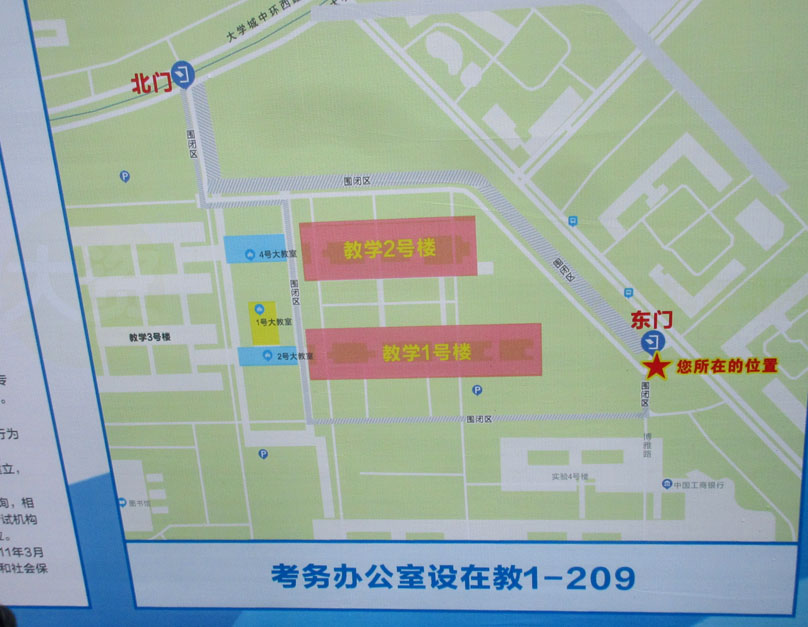 | 广工这周六日两天 教学区有一个一级建造师资格考试在进行 具体考场范围是教一和教二楼栋 单科时长三四个钟 | ||||||